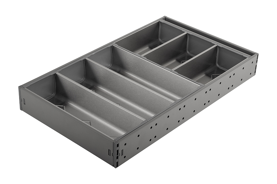 Příborník do StrongMax 16. Kompletní příborník 276x473mm. Sada pro sestavení příborníků pro všechny šíře zásuvek. V sadě jsou 3 misky o délce 264mm a 3 misky o délce 176mm. Je možno rozšířit o moduly 88, 176, nebo 264mm. Antracit. Výška systému je 59mm.